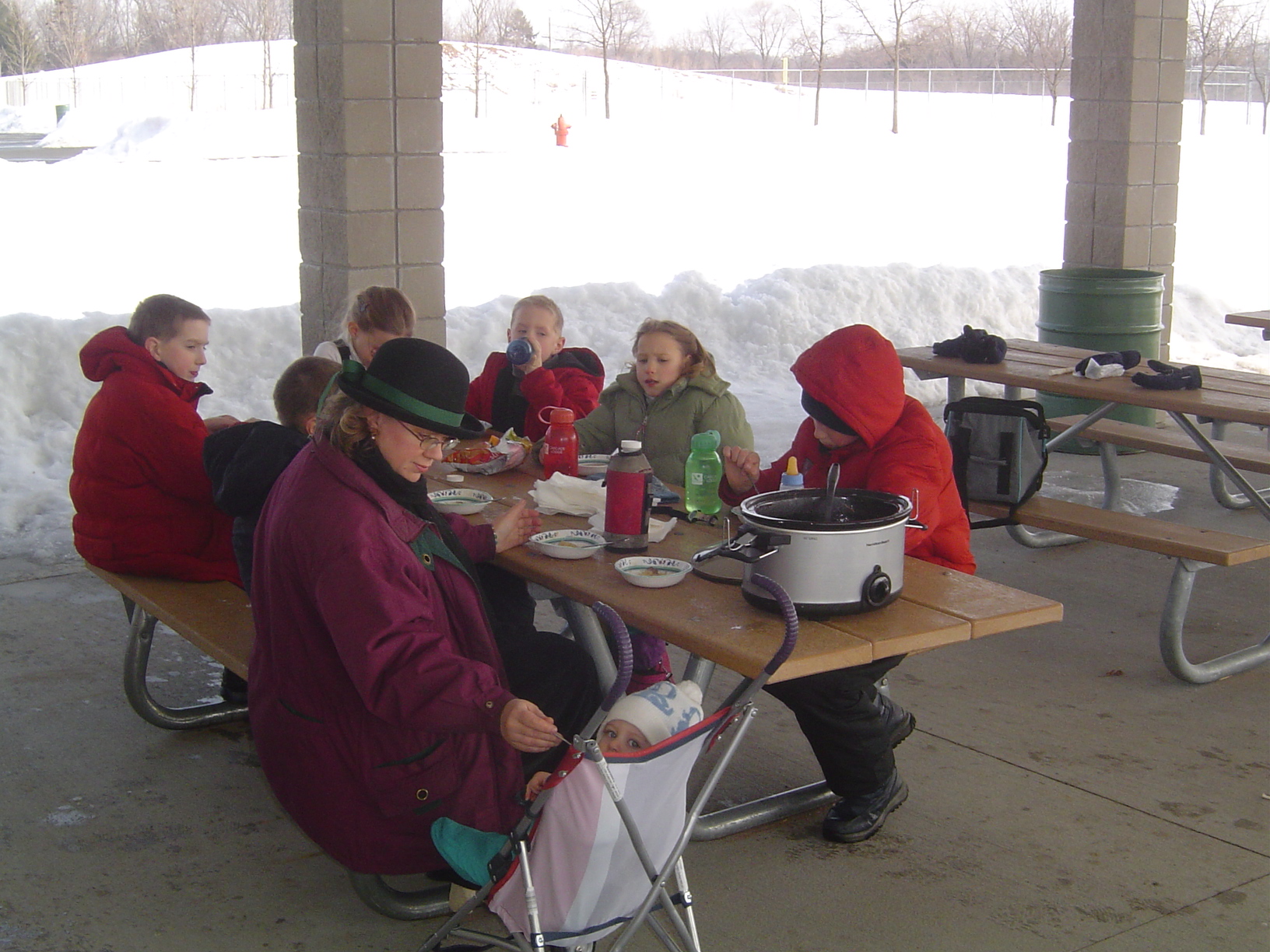 We have decided that if a meal (A) takes place in a winter month, (B) is eaten on the floor on a picnic blanket or at a picnic table, (C) has picnic-like foodstuffs, and (D) is in a park of some sort. . . well, then we’re calling it a picnic!