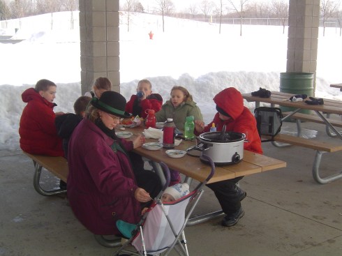 March 7th, 2010, the JamFam actually supped outside. Debbie’s homemade beef stew. Want proof?