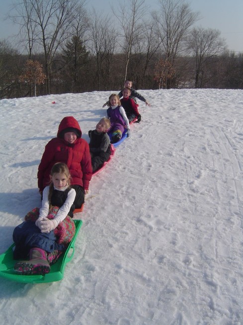 But then we did something we’ve never done on a picnic, or on a 50 degree day – we went sledding.